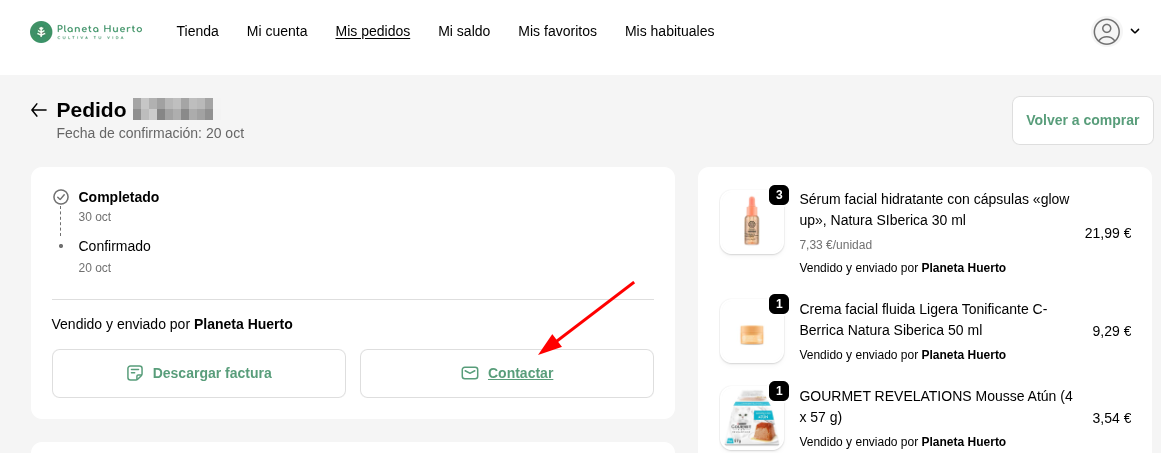 Para gestionar la devolución desde tu cuenta, dentro de tu pedido y pinchando en "contactar" - Consulta:
